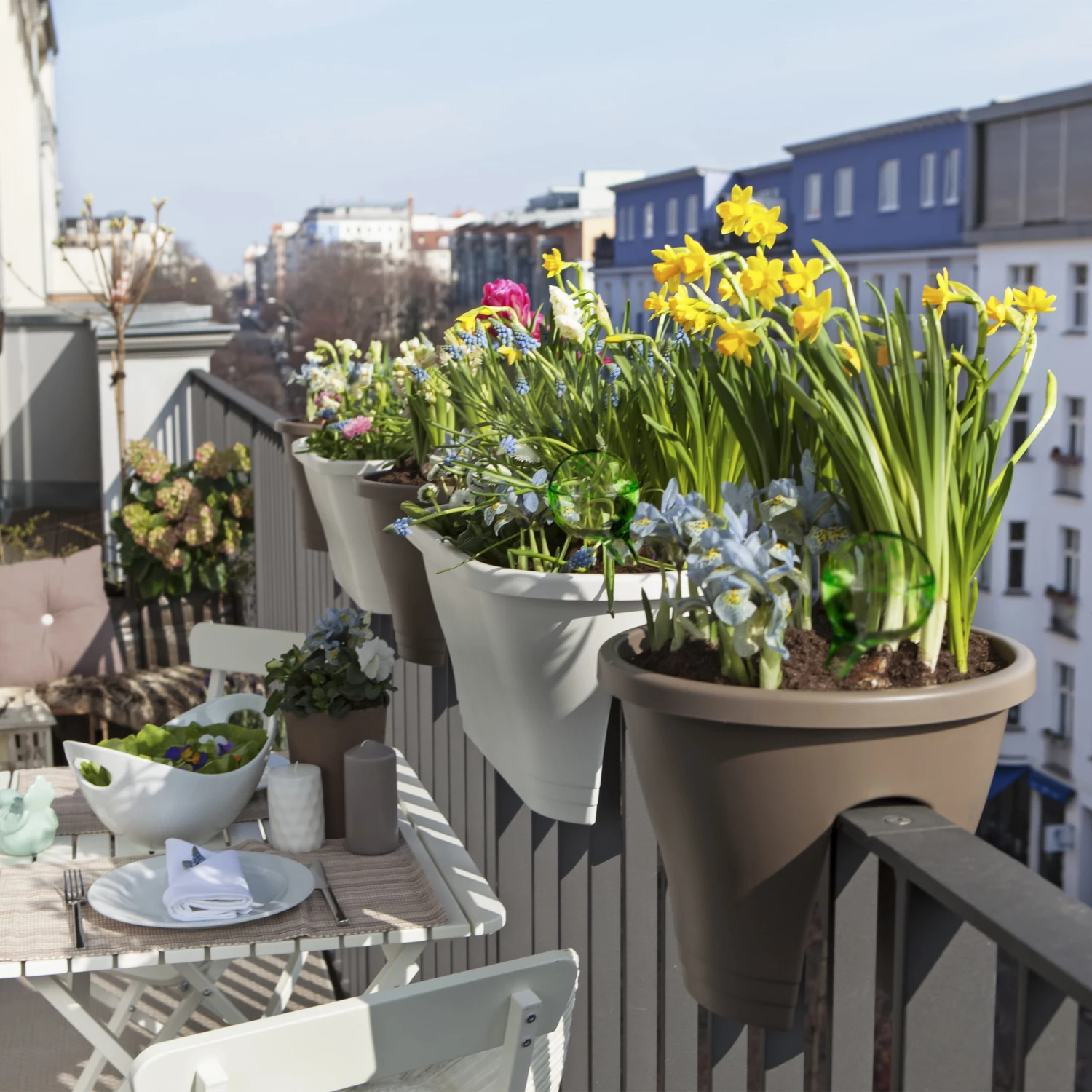 – Mit Wasser befüllen und mit Spitze nach unten fest in den Blumentopf stecken